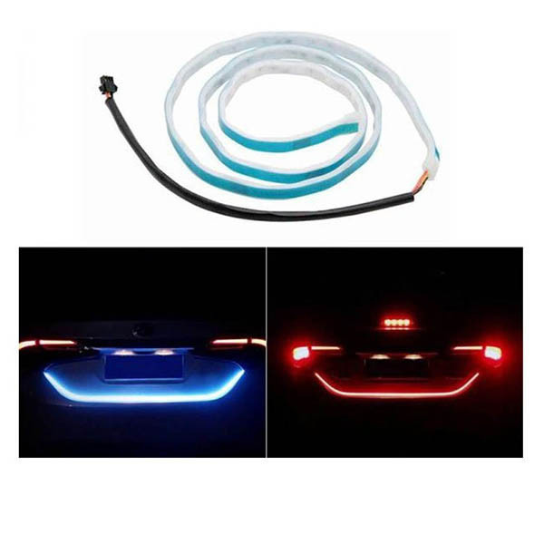 دیلایت فلکسیبل صندوق عقب در حالت های مختلف خودرو نور های متفاوت و زیبایی ایجاد می کند،که زیبایی خودروی شما را دو چندان می نماید.این دیلایت در زمان ترمز کردن ( و به محض فشردن پدال ترمز و هم زمان با روشن شدن جراغ استپ ترمز شما،)بلافاصله به رنگ قرمز و به حالت فلش زن روشن می شود و باعث جلب توجه رانندگان خودرو های پشت سر شما می شود و از تصادفات جلوگیری می کند.به هنگام دنده عقب رفتن ، هم زمان با روشن شدن چراغ دنده عقب شما ، رنگ دیلایت صندوق عقب شما سفید شده و نور یک دست و سفیدی در پشت ماشین شما نمایان می شود که خودرو های پشتی را از عقب رفتن شماآگاه می کند. نصب دیلایت صندوق عقب برای نصب این دیلایت صندوق عقب باید دو سیم قرمز و مشکی را به ترتیب به برق مثبت و منفی خودرو ی خودو به صورت ثابت متصل کنید. در این حالت هیچ چراغی از دیلایت شما روشن نمی شود. دو سیم زرد رنگ دیلایت را به مثبت راهنمای دو سمت خودرو ی خود متصل کنید.توجه داشته باشید که سیم هر سمت را به درستی متصل کنید.در صورت اتصال صحیح این دو سیم ، هنگام راهنما زدن به هر سمت،دیلایت صندوق عقب شما نیز به همان سمت روشن می شود.و به هنگام فلاشر یا جفت راهنما زدن دیلایت شما از وسط به دو سمت خودرو روشن می شود.دو سیم باقی مانده را یکی به چراغ دنده عقب و یک سیم را به استپ ترمز متصل کنید تا در زمان مناسب دیلایت شما روشن شود.