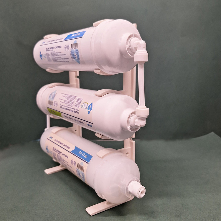 این فیلتر 3 مرحله ای با پایه خود ایستا بهترین گزینه برای فیلتر های بیرونی انواع یخچال ساید می باشد. دقت نمایید فیلتر های بیرونی ساید هیچ ربطی به برند و فیلتر داخلی ساید ندارند.بعلت داشتن پایه فیلتر از کثیف شدن فیلتر ها که معمولا پشت ساید یا زیر کابینت خوابانده می شود ؛ جلوگیری می شود.همچنین هنگام تعویض نصب آنها آسان می باشد.فیلتر های سه مرحله ای FAP مونتاژ ایران و مواد بکار رفته بخصوص کربن ، متریال تایوان می باشد.و کیفیت ساخت بالایی نسبت به فیلتر های مشابه دارد.از این فیلتر سه مرحله ای خود ایستا که بیشتر برای پشت ساید استفاده می شوند ؛ می توانید برای آبسردکنهایی که بصورت دستی متصل به آب شده اند نیز استفاده نمود ؛ که معمولا هنگام نصب ، پشت دستگاه آبسردکن قرار داده می شوند. این فیلتر ها به یکدیگر وصل بوده و همانند تک فیلتر ، یک ورودی و یک خروجی دارد ، همچنین بخاطر داشتن پایه خود ایستا ، به اندازه قطر یک فیلتر فضای پشت ساید را اشغال می کنند. برای نصب فیلتر ها بهتر است ابتدا پس از وصل شلنگ ورودی به فیلتر مرحله اول ( سدیمنت پنج میکرون شفاف ) از خروجی فیلتر مرحله دوم ( کربن اکتیو ) سیاهی کربن به مدت 7 دقیقه گرفته شود. سپس شلنگ قسمت یخچال ساید به خروجی مرحله سوم ( سدیمنت یک میکرون مات ) وصل شود. این سه مرحله جهت جذب زنگ آب و سنگ ریزه ؛ همچنین حذف کلر آب ، بو و طعم اضافی آب مناسب می باشد. عمر مفید این پکیج حدود 18 ماه می باشد.