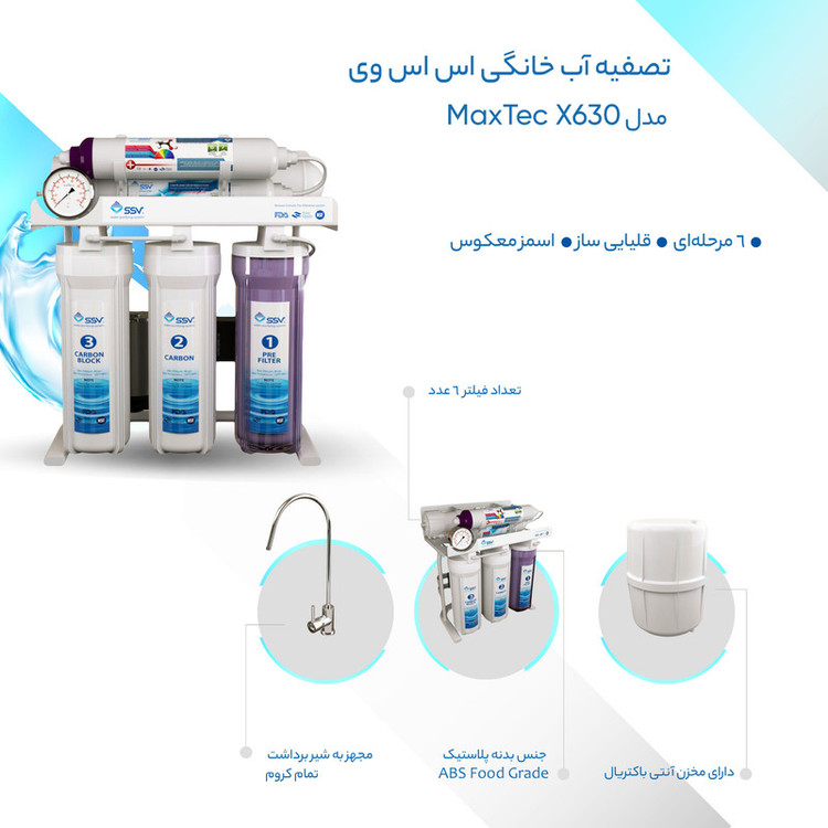 ظرفیت : سرعت تصفیه 6.6 لیتر در ساعت (160لیتر در شبانه روز) - ظرفیت منبع 12 لیتر لیتر