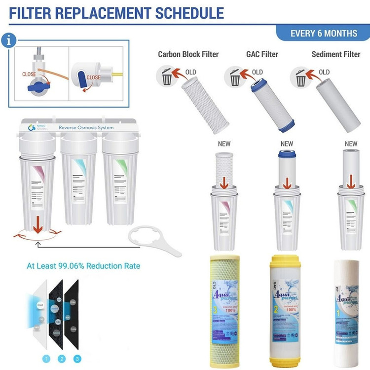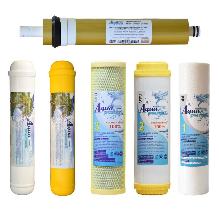 پک فیلتر 6 عددی با برند معتبر آکوا پیورست مدل ممبران 75 گالنی 13 لایه گلد، پستکربن، فیلتر مینرال (تنظیم املاح معدنی و PH آب) و پیشتصفیه (3 عددی) تایوانی ساخته شده از بهترین متریال درجه کیفیت A و فود گرید با کربن 100 درصد گیاهی (پوسته نارگیل) در دستگاههای تصفیه آب خانگی قرار میگیرند. فیلترهای این برند دارای سایز استاندارد میباشد و میتوان از آن در تمامی دستگاههای تصفیه کننده آب استفاده کرد. از ویژگیهای منحصر به فرد فیلترهای آکوا پیورست میتوان به; قابلیت کارکرد در آبهای سنگین، فیلتر قلیایی تنظیم کننده PH آب (افزایش مواد معدنی در آب)، کیفیت ساخت بالا، جنس بدنه فیلترها PVC با ارزش غذایی Food Grade، ممبران 13 لایه 75 گالنی با کامپوزیت درجه کیفی A و کربن به کار رفته در فیلترها از منشاء گیاهی 100 درصد پوسته نارگیل اشاره کرد. مواد مضری که توسط این فیلترها از آب حذف میشوند عبارتند از: گل و لای، شن و ماسه، زنگ لوله، بو، مزه و طعم نا مطبوع، نمک و آهک، شوری آب، کلر و مشتقات آن و آلایندههای شیمیایی و در قسمت فرآوری آب فیلتر مینرال تمام املاح معدنی مورد نیاز بدن را به آب اضافه میکند و همچنین فیلتر مینرال سبب بهبود طعم آب و گرفته شدن تلخی آب و افزایش PH آب خواهد شد. فیلترهای تصفیه آب آکواپیورست قابلیت حذف نا خالصیها تا اندازه 0.0001 میکرون با دقت 99 درصد را دارد. استفاده از پک فیلتر آکواپیورست باعث افزایش کیفیت آب مصرفی شما میشود و علاوه بر این باعث طول عمر بیشتر دستگاه تصفیه آب میشود. بنابر این اگر به دنبال خرید فیلتر تصفیه آب تایوانی با کیفیت و مطمئن هستید، فیلتر تصفیه آب آکواپیورست یکی از گزینههایتان است.