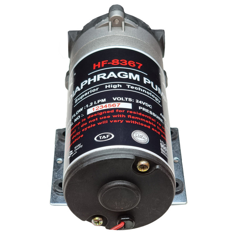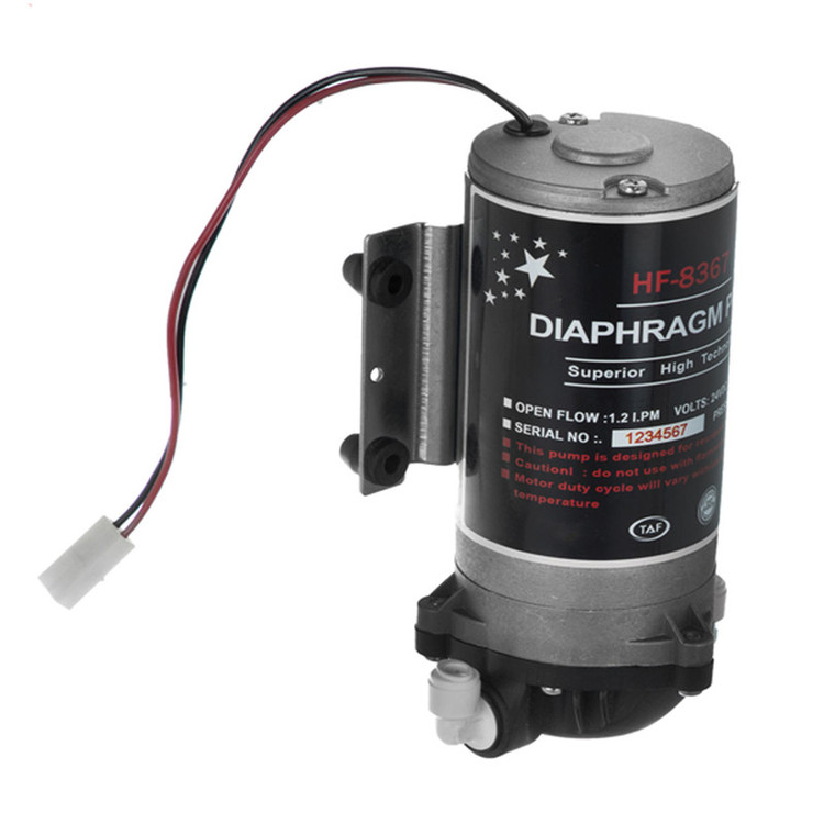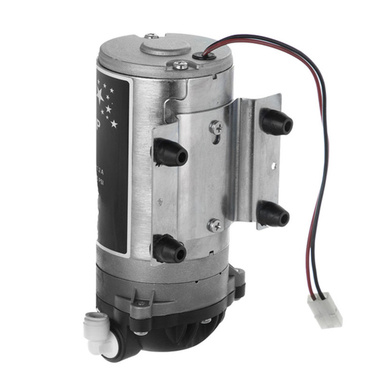 پمپ ها در دستگاههای تصفیه اب اسمز معکوس RO وظیفه بالابردن فشار آب جهت تغذیه فیلترهای ممبران را دارند. حداقل فشار کاری ممبران های دستگاههای خانگی 50PSI میباشد که پمپ ها وظیفه تامین این فشار را به عهده دارند . پمپ ها دارای 2 قسمت میباشند که یکی بدنه اصلی و سیم پیچ اصلی که در واقع یک موتور الکتریکی میباشد و دومی قسمت کلگی یا هد است که با اتصال کلگی به موتور ، درواقع موتور به پمپ تبدیل میشود . اغلب خرابی پمپ ها از قسمت هد یا کلگی میباشد . اگر پمپ دستگاه شما کار میکند ولی گیج فشار ، کمتر از 50 PSI را نشان میدهد احتمالا با تعویض کلگی یا هد مشکل برطرف خواهد شد و تعویض آن نیز بسیار راحت است. برای دستگاه تصفیه آب خانگی ، پمپ های 24 ولت استفاده میشود . تمام پمپ های تصفیه آب خانگی مشابه بهم هستند و هرکدام از آنها را میتوان بر روی هر برند دستگاه تصفیه آب نصب کرد . پمپ خوب باید کم صدا ، پرقدرت و پرفشار و کم لرزش باشد پمپ 24 ولت دستگاه تصفیه آب خانگی محصول داخلی و ساخت ایران می باشد و از کیفیت و قیمت قابل قبولی نسبت به دیگر برندهای وارداتی می باشد. حداکثر فشار این پمپ 125PSI هست. همراه این پمپ دو عدد زانویی پمپ اورگانیک تایوان ارسال می شود.