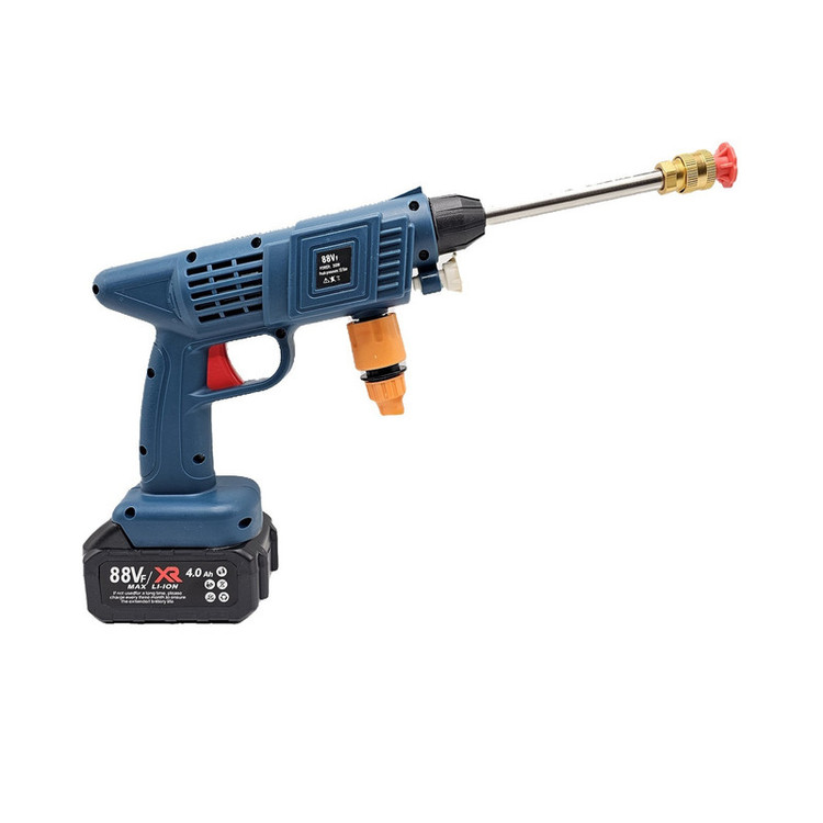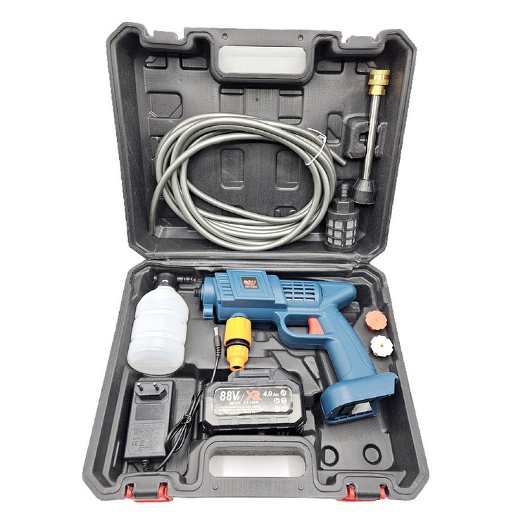 کارواش شارژی خانگی با باطری 88 ولت لیتیومی با قدرت 260 وات است .حسن این دستگاه نسبت به دستگاه های دیگر این است که از سری های پلاستیکی استفاده شده است که نشکن است ودر اثر فشار نمیشکند. حداکثر جریان خروجی سیالات در این کارواش 4 لیتر در دقیقه می باشد و فشار آب در بازه 22 تا 30 بار است. ویژگی کلیدی این کارواش قابلیت تنظیم فشار برای نیازهای مختلف است. از مهم ترین کاربردهای این کارواش می توان به مواردی مثل سمپاشی، تمیزکاری و آبیاری، شستشوی خودرو، پارکینگ، استخر، مبلمان، باغ، دوچرخه و … اشاره کرد. کارواش های شارژی یکی از اقلام ضروری برای در هر خانه به شمار می رود. طراحی این نوع کارواش ها به گونه ای است که بدون نیاز به آب فراوان یا حتی برق می توان از آن استفاده نمود. با استفاده این کارواش می توانید به راحتی و با صرفه جویی در مصرف آب، تنها با یک سطل آب، آبیاری سریع و پرفشاری را در منزل ، باغ ، زمین کشاورزی و … تجربه کنید. . فشار آب این کارواش خانگی در بازه 22 تا 30 بار قرار دارد که ویژگی قابل توجه این کارواش قابلیت تنظیم فشار آن است که می توانید با توجه به نیاز خود و آلودگی محل مورد نظر، آن راتنظیم نمایید. معمولاً فشارهای پایین برای آبیاری گیاهان و فشار بالا برای شستشوی وسایل نقلیه و … مورد استفاده قرار می گیرد. طول پاشش این کارواش تا 5 متر می باشد. باطری قابل شارژ این کارواش نیز باعث در دسترس بودن همیشگی این کارواش حتی در مکان هایی که به برق دسترسی ندارید شده است.