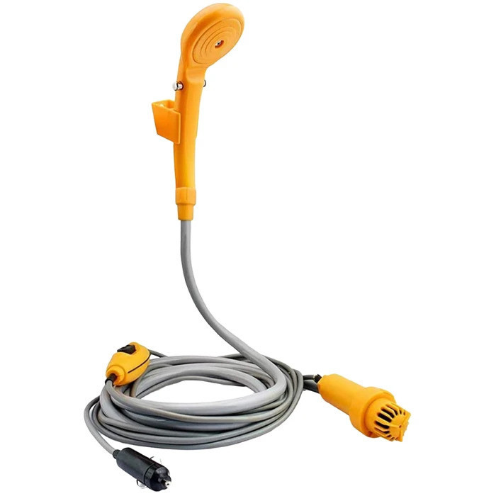 در هنگام کوهنوردی یا سفر شاید نیاز به دوش و استحمام پیدا کنید و وسیله ای نداشته باشید که خود را با آن بشویید. یا بخواهید باغچه کوچکتان را آبیاری کنید و شیر آب در دسترس شما نباشد. دوش سفری وسیله ای است که دقیقا همین نیاز شما را برطرف می کند و می توانید به آسانی با آب دوش بگیرید. دوش سفری مدل ASS-01 یک دوش الکتریکی با فندکی فوق العاده برای مسافرت در طبیعت، شستشوی ماشین، آبیاری باغچه و مواردی مشابه است. این محصول با دارای پمپ الکتریکی است که با فندکی خودرو کار می کند. برای استفاده از این محصول ابتدا باید گالن یا مخرنی را با آب پر کنید. نوجه کنید که آب نباید جوش یا داغ باشد زیرا به دوش آسیب می رساند. سپس پمپ محصول را داخل گالن یا مخزن قوطه ور یا غرق کنید. سوکت فندکی محصول را به فندکی خودرو منصل کنید. اگر قصد استحمام یا دوش گرفتن دارید، یک قلاب، پایه پلاستیکی یا گیره مکنده لاسنیکی برای آویزان کردن آن در ارتفاع داخل جعبه محصول وجود دارد. سری دوش را می توانید با کمک قلاب، پایه پلاستیکی یا گیره مکنده لاسنیکی روی شیشه با در ارتفاع ثابت کنید. اگر کلید پمپ را روشن کنید می توانید از دوش استفاده کنید.