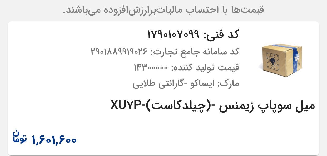 میل سوپاپ پژو XU7P مناسب برای پژو 405. پارس و سمند موتور جدید