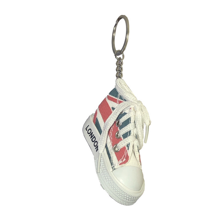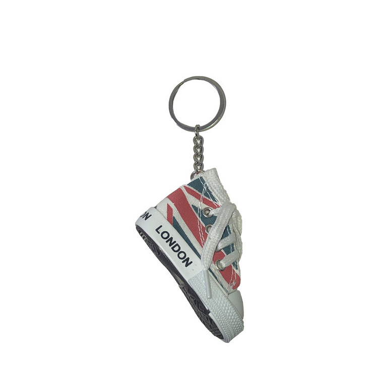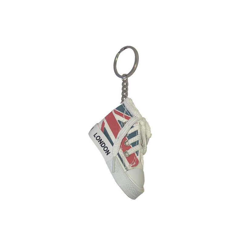 جاسوییچی خودرو مدل کفش با طرح نوشته LONDON به طرح پرچم یک محصول زیبا جذاب و با کیفیت بالا است و از نمونه کفش واقعی استفاده شده است تا طبیعی طراحی شود طول محصول 7 سانتی متر است که یک سایز کاملا استاندارد مناسب کیف و یا جیب است