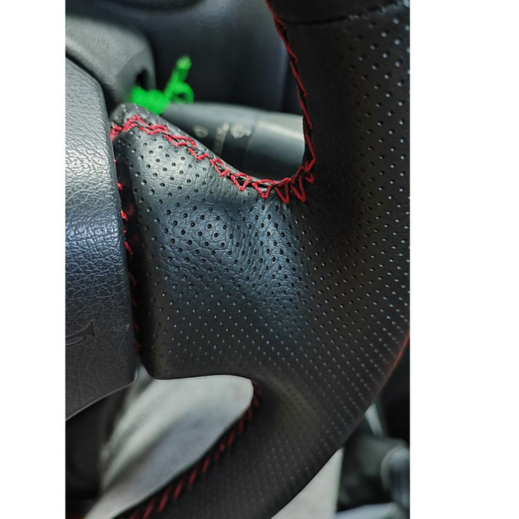 روکش فرمان دوختی طراحی شده فقط برای پژو 206 که با پوشش کامل دور فرمان به همراه بازویی های فرمان جلوه ای بسیار زیبا به فرمان و خودرو شما میدهد با دوخت این روکش فرمان یک فرمان تمام چرم مشابه با خودرو های وارداتی خواهید داشت چرم به کار رفته در این محصول چرم درجه 1 میباشد که کیفیت عالی و در نتیجه ماندگاری بالا به ارمغان می آورد رنگ مشکی این محصول به صورت مشکی با دوخت قرمز ارائه میشود رنگ قرمز به صورت مشکی قرمز دو رنگ ( دو قسمت از دور فرمان قرمز و دو قسمت مشکی ) و رنگ زغالی مشکی با نخ مشکی ارائه میشود رنگ های تعریف شده د اسلاید ها قابل رویت میباشد